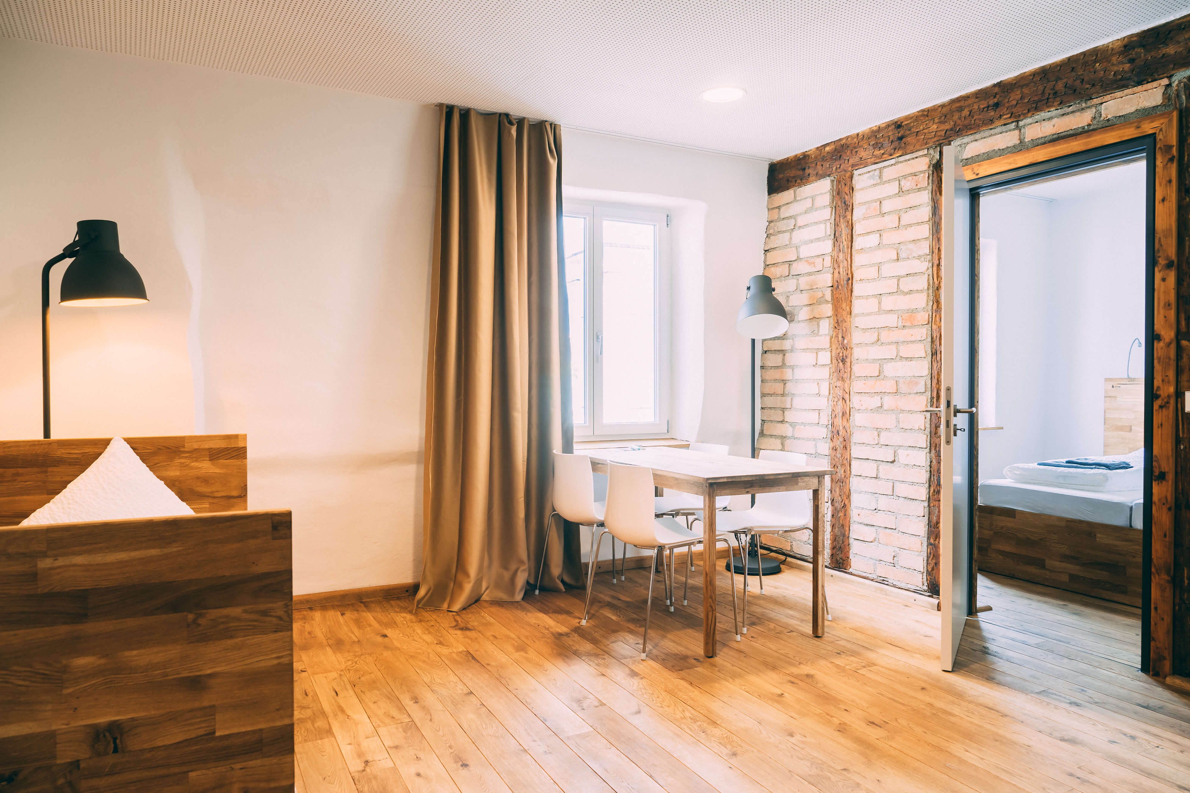 The Amtshaus has been extensively modernized and has barrier-free access to all six floors thanks to an elevator. The vacation apartments have state-of-the-art thermal and acoustic insulation and are furnished to a high standard with modern furnishings. Clear and simple designs meet solid oak parquet flooring in the living and sleeping areas, natural slate in the bathroom, designer fittings, Raindance showers, flat-screen TV, free professional WiFi and fully equipped fitted kitchens with oven, extractor fan, dishwasher, crockery and coffee machine.